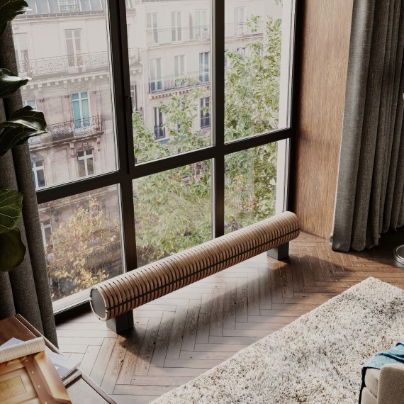 Корпус этого прибора выполнен из натуральных материалов, имеет деревянные элементы, которые могут быть окрашены в различные оттенки. За счёт этого прибор можно вписать практически в любой интерьер, он не будет смотреться чуждым ему. Прибор оснащён коррозионностойким медно-алюминиевого теплообменником. При высокой температуре теплоносителя поверхность прибора сильно не разогревается.